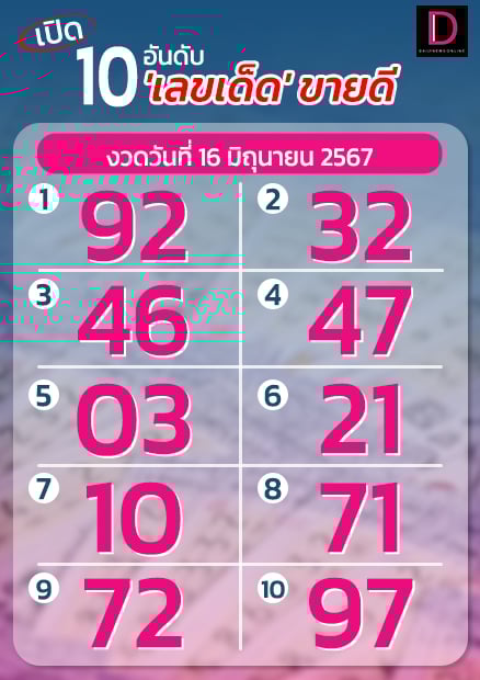 รีบส่องด่วน! มาแล้ว 10 เลขเด็ดฮอตฮิต งวด 16 มิ.ย.67 คอหวยต้องห้ามพลาด