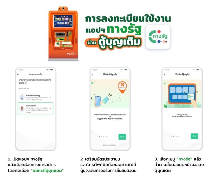 สมัครยืนยันตัวตนแอปทางรัฐ ผ่านตู้บุญเติม รอรับเงินดิจิทัล 10,000 บาท