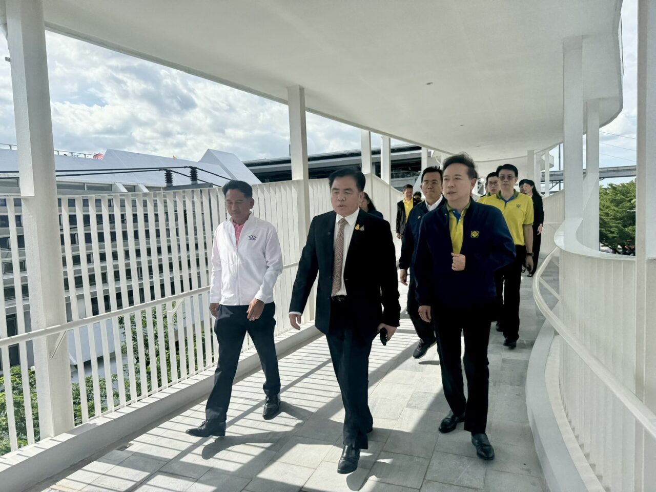 โดยมี นายพิเชฐ คุณาธรรมรักษ์ อธิบดีกรมการขนส่งทางราง นายกิตติกร ตันเปาว์ รองผู้ว่าการ (วิศวกรรม) การรถไฟฟ้าขนส่งมวลชนแห่งประเทศไทย (รฟม.) นายสุรพงษ์ เลาหะอัญญา ผู้อำนวยการใหญ่สายธุรกิจ MOVE และกรรมการผู้อำนวยการใหญ่ บริษัท ระบบขนส่งมวลชนกรุงเทพ จำกัด (มหาชน) หรือบีทีเอสซี และ ดร.นาฬิกอติภัค แสงสนิท กรรมการผู้จัดการ บริษัท ธนารักษ์พัฒนาสินทรัพย์ จำกัด หรือ DAD Asset Development ให้การต้อนรับและร่วมตรวจเยี่ยมการเปิดใช้งานทางเดิน Skywalk