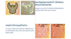 ช่องใสรูปพระครุฑพ่าห์ มีการพิมพ์ด้วยหมึกพิมพ์พิเศษสีทอง และมีรูปพระครุฑพ่าห์สีขาวอยู่ภายในช่องใสลายประจำยามมุมซ้ายล่าง