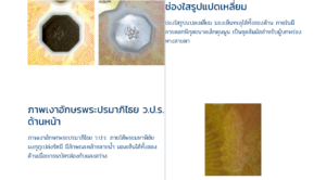 ช่องใสรูปแปดเหลี่ยม มองเห็นทะลุได้ทั้งสองด้าน ภายในมีลายดอกพิกุลขนาดเล็กดุนนูน เป็นจุดสัมผัสสำหรับผู้บกพร่องทางสายตาภาพเงาอักษรพระปรมาภิไธย ว.ป.ร. ด้านหน้า