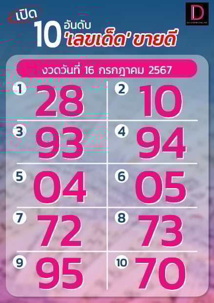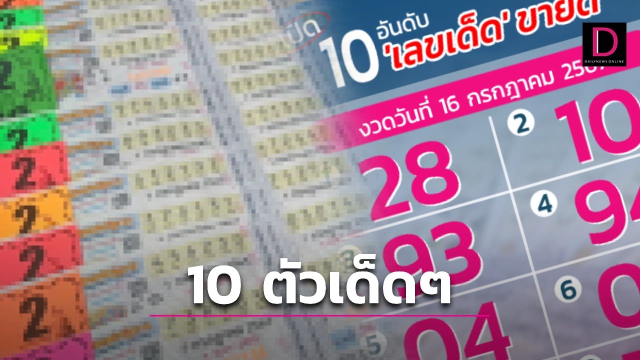 เปิด 10 เลขเด็ดมาแรง งวด 16 ก.ค.67 ขายดีสุดปัง คอหวยห้ามพลาด