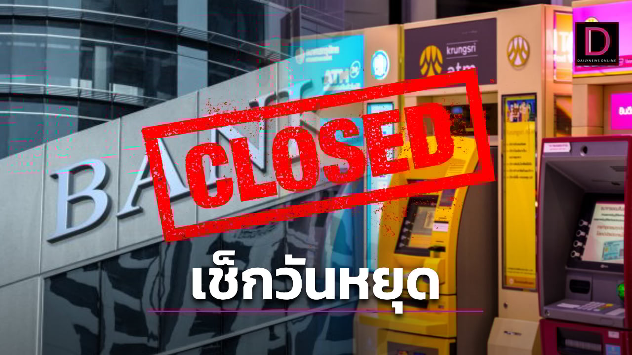 สาขาธนาคารทั่วไป นอกห้างสรรพสินค้า : ปิดทำการ (วันเสาร์ที่ 20 กรกฎาคม 2567,วันอาทิตย์ที่ 21 กรกฎาคม 2567 และวันจันทร์ที่ 22 กรกฎาคม 2567)
