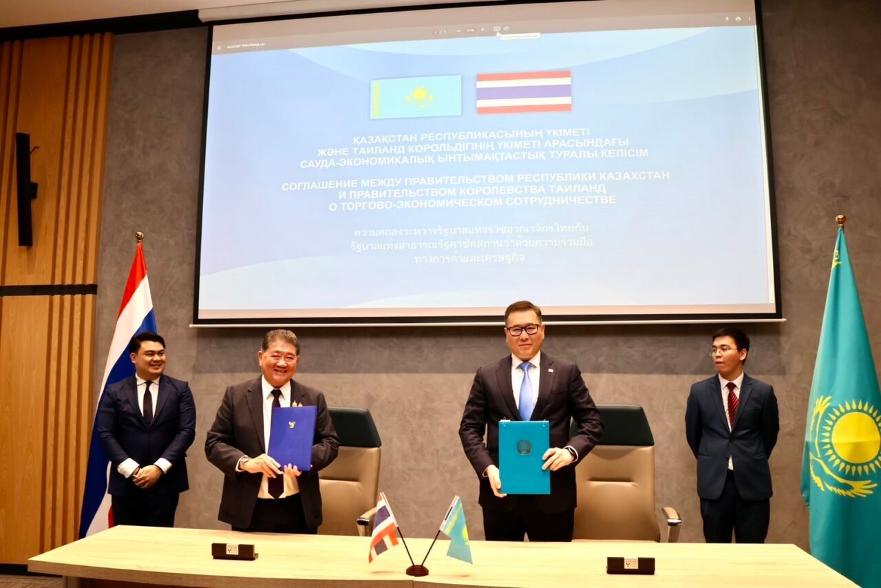 นายภูมิธรรม เวชยชัย รักษาการนายกรัฐมนตรี เปิดเผยภายหลังลงนามความตกลงว่าด้วยความร่วมมือทางเศรษฐกิจและการค้าระหว่างไทยและคาซัคสถาน (Agreement on Trade and Economic Cooperation between Thailand and Kazakhstan) ระหว่าง กระทรวงพาณิชย์ของไทย กับ กระทรวงการค้าและบูรณาการ ของคาซัคสถาน โดยมี นายอาร์มัน ชักคาลีเยฟ รัฐมนตรีว่าการกระทรวงการค้าและบูรณาการ เป็นผู้ลงนามฝ่ายคาซัคสถาน ที่ EXPO International Exhibition Center ว่า ในระยะ 5 ปีที่ผ่านมา (2562-2566) ไทยและคาซัคสถานมีมูลค่าการค้ารวมเฉลี่ย 3,500 ล้านบาท โดยในปี 2566 การค้ารวมมีมูลค่า 5,200 ล้านบาท เพิ่มขึ้นจากปีก่อนหน้า ร้อยละ 26.28 โดยไทยส่งออกรถยนต์และอุปกรณ์ เครื่องจักรกล เครื่องปรับอากาศ เครื่องสำอาง เครื่องปรุงรส เป็นต้น ไทยและคาซัคสถาน ยังมีความสัมพันธ์ที่ดีมาโดยตลอด และหวังว่าหลังจากมีการลงนามในความตกลง ทั้งสองประเทศจะสามารถพัฒนาและยกระดับความสัมพันธ์ทั้งด้านเศรษฐกิจ การค้าและการลงทุนให้ดีมากยิ่งขึ้นต่อไป
