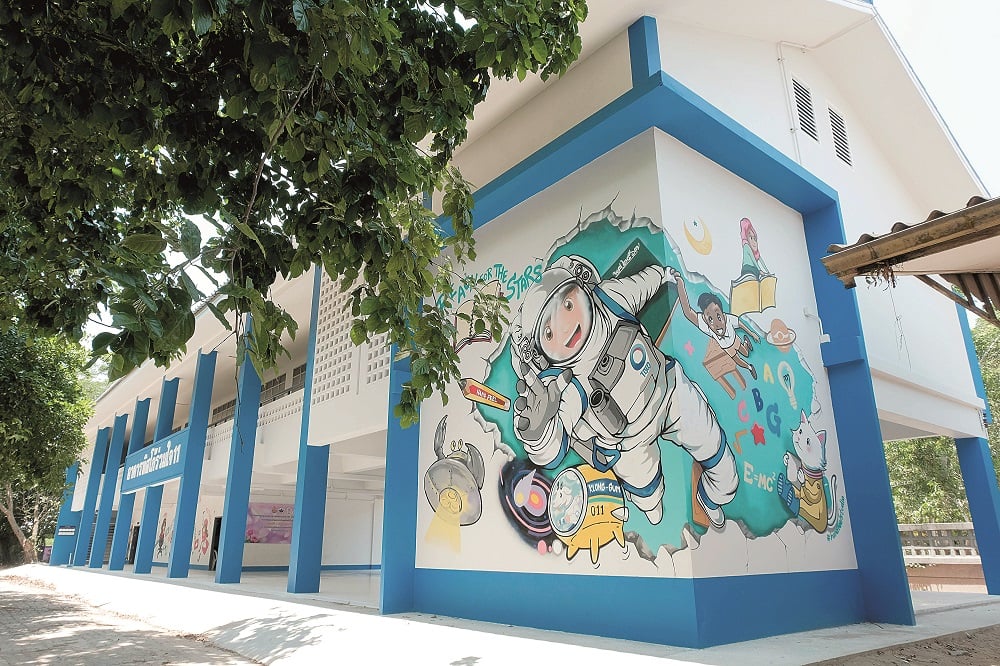 จุดนี้เป็นแรงบันดาลใจในการรังสรรค์งานศิลปะบนกำแพง (Graf fiti) บนอาคารเรียนทิสโก้ร่วมใจ 11 โดยตั้งใจให้เป็นแหล่งเรียนรู้และสร้างแรงบันดาลใจให้เด็กบ้านคลองกำได้รู้จักอาชีพที่น่าสนใจและสามารถเป็นได้ในอนาคต เช่น วิศวกร หมอ/พยาบาล เกมเมอร์ นักฟุตบอล ผู้ให้คำปรึกษาทางการเงิน ยูทูปเปอร์ และบาริสต้า ไม่เพียงเท่านี้ยังวาดเด็กใส่ชุดอวกาศเพื่อสื่อถึงจินตนาการที่กว้างใหญ่ราวจักรวาลที่มีแต่ความพยายามจากการศึกษาเรียนรู้เท่านั้นที่จะคว้าฝันให้เป็นจริงได้ “เด็ก ๆ ให้ความสนใจและเข้ามามีส่วนร่วม สิ่งเหล่านี้ค่อย ๆ จุดประกายความฝันใหม่ของเด็ก ๆ ขึ้นมาทีละน้อย”