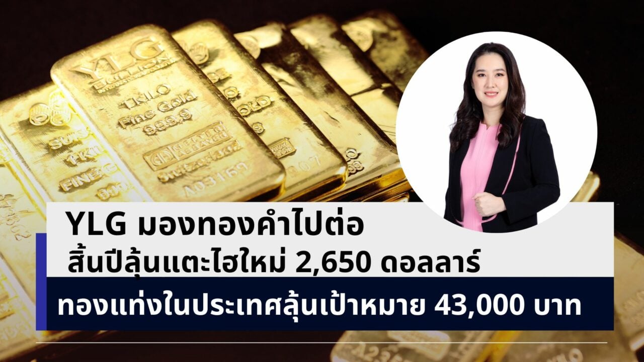 วายแอลจี (YLG) เปิดมุมมองทิศทางราคาทองคำ มีปัจจัยลุ้นเห็นราคาทองคำทำสถิติใหม่อีกครั้ง อาจแตะ 2,650 ดอลลาร์สหรัฐต่อทรอยออนซ์ ด้านทองไทยมีแรงกดดันจากค่าเงินบาทที่แข็งค่า มองเป้าหมายปีนี้ที่ 43,000 บาทต่อบาททองคำ