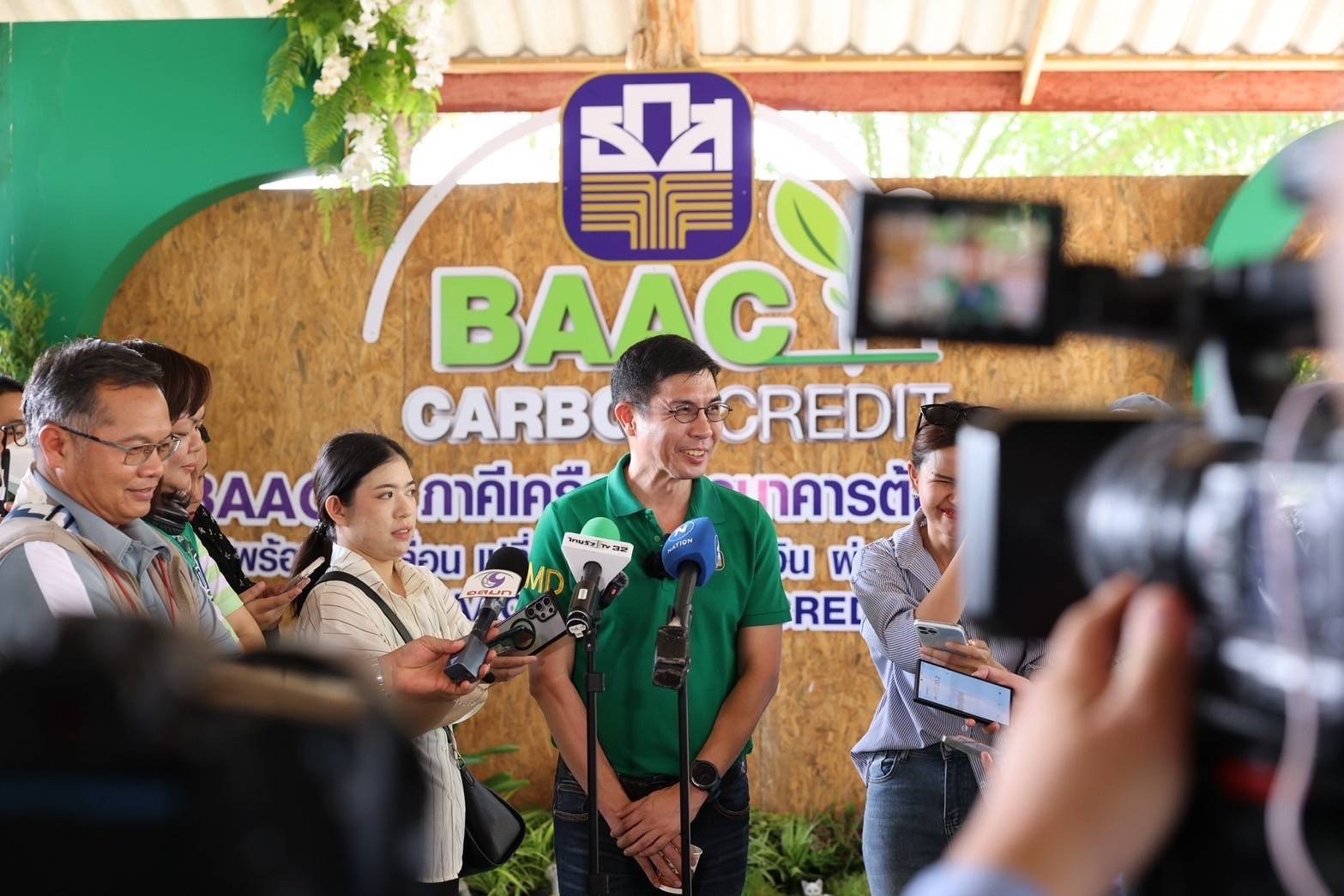 นายฉัตรชัย ศิริไล ผู้จัดการธนาคารเพื่อการเกษตรและสหกรณ์การเกษตร (ธ.ก.ส.) เปิดเผยว่า ธ.ก.ส. ได้ขับเคลื่อนภารกิจด้านการรักษาสิ่งแวดล้อมและทรัพยากรมาอย่างต่อเนื่อง เริ่มตั้งแต่การสนับสนุนให้เกษตรกร ปลูกป่าตามพระราชดำริ “ปลูกป่า 3 อย่าง ประโยชน์ 4 อย่าง” และยกระดับไปสู่โครงการธนาคารต้นไม้และชุมชนไม้มีค่าจนปัจจุบันมีชุมชนเข้าร่วมโครงการจำนวน 6,814 ชุมชน มีต้นไม้ขึ้นทะเบียนกว่า 12.4 ล้านต้น มีสมาชิก 124,071 คน มูลค่าต้นไม้ในโครงการกว่า 43,000 ล้านบาท นอกจากนี้ ยังมีการนำต้นไม้ที่ปลูกมาแปลงเป็นสินทรัพย์ เพิ่มมูลค่าให้กับที่ดินและนำมาใช้เป็นหลักประกันเงินกู้กับ ธ.ก.ส. ทำให้สมาชิกในชุมชนมีรายได้จากผลิตภัณฑ์ที่ได้จากต้นไม้/ป่าไม้ ปีละ 116 ล้านบาท และเพื่อเป็นการต่อยอดการดำเนินงานให้ตอบโจทย์เป้าหมายการขับเคลื่อนประเทศไทยไปสู่ความเป็นกลางทางคาร์บอน ภายในปี ค.ศ. 2050 และบรรลุเป้าหมายการปล่อยก๊าซเรือนกระจกสุทธิเป็นศูนย์ (Net Zero GHG Emission) ในปี ค.ศ. 2065 ธ.ก.ส. ได้จัดตั้งโครงการ BAAC Carbon Credit ขับเคลื่อนการซื้อ – ขายคาร์บอนเครดิตภาคป่าไม้อย่างเป็นทางการในประเทศไทย ตามโครงการลดก๊าซเรือนกระจกภาคสมัครใจตามมาตรฐานประเทศไทย (Thailand Voluntary Emission Reduction Program: T-VER) ซึ่งมีการซื้อ-ขายครั้งแรกไปแล้วที่ชุมชนธนาคารต้นไม้บ้านท่าลี่และบ้านแดง จังหวัดขอนแก่น จำนวน 400 ตันคาร์บอน โดย ธ.ก.ส. รับซื้อในราคากึ่ง CSR ตันละ 3,000 บาท คิดเป็นเงินรวม 1.2 ล้านบาท