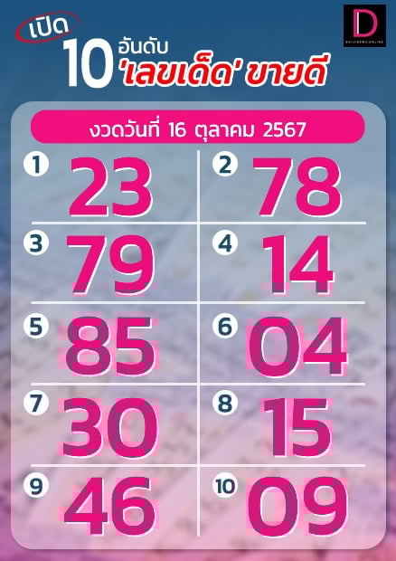 มาแล้ว! เปิด 10 เลขเด็ดมาแรงงวด 16 ต.ค. 67 ลุ้นรับทรัพย์รวยก้อนโต