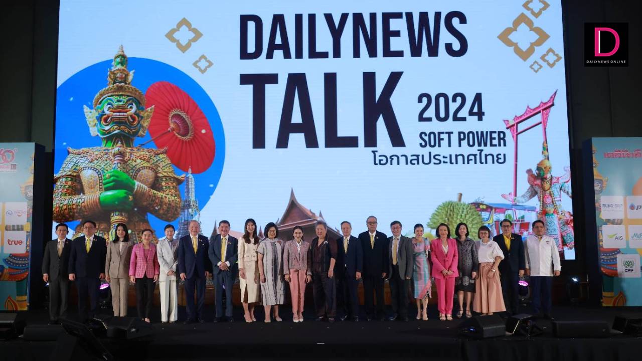 เมื่อวันที่ 21 ต.ค. 67 สำนักข่าวเดลินิวส์นำทีมโดย นางประพิณ รุจิรวงศ์ นายปารเมศ เหตระกูล นางสิริวรรณ พันธุ์ปรีชากิจ กรรมการบริหารหนังสือพิมพ์เดลินิวส์และเดลินิวส์ออนไลน์ และนางสาวนลิน รุจิรวงศ์รองกรรมการผู้จัดการใหญ่ (EVP) ฝ่ายกลยุทธ์องค์กร และการตลาดเดลินิวส์ จัดงานเสวนา เดลินิวส์ ทอล์ก 2024 (Dailynews Talk 2024) ในหัวข้อ “Soft Power : โอกาสประเทศไทย” โดยได้รับเกียรติจาก นางสาวแพทองธาร ชินวัตร นายกรัฐมนตรี เป็นประธานเปิดงานพร้อมปาฐกถา ในหัวข้อ “ซอฟต์พาวเวอร์ไทย…ไปอย่างไรให้มีพลัง ?”และนายแพทย์สุรพงษ์ สืบวงศ์ลี รองประธานคณะที่ปรึกษานโยบายของนายกรัฐมนตรี ร่วมปาฐกถาในหัวข้อ “ซอฟต์พาวเวอร์…พลิกฟื้นเศรษฐกิจไทย”นอกจากนี้ยังมีการเสวนาจากผู้บริหาร หน่วยงานภาครัฐ-เอกชน ที่มาร่วมแลกเปลี่ยนมุมมองความคิดเพื่อสานฝันให้ซอฟต์พาวเวอร์ไทยโด่งดังและก้าวไกลไปสู่เวทีโลก