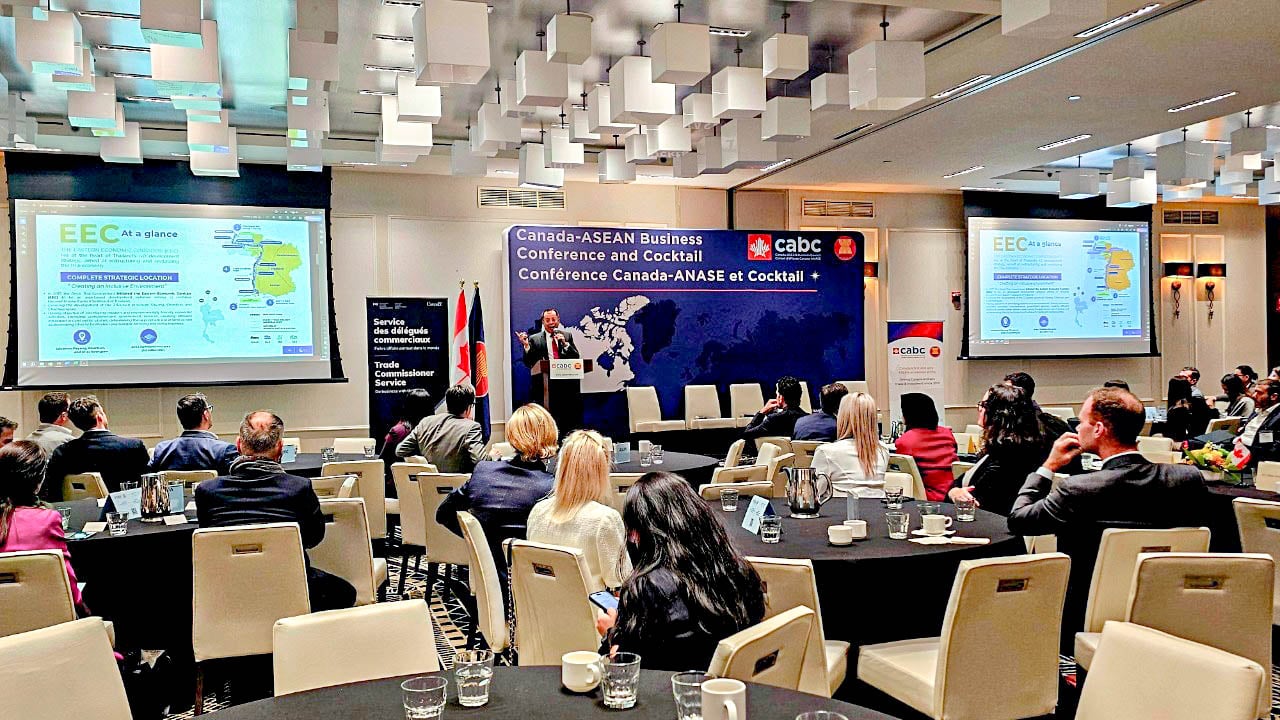นอกจากนี้อีอีซีได้นำเสนอในหัวข้อ “EEC Opportunities for Sustainability”ในงานCanada-ASEAN Conference and Awardณ นครมอนทรีออล โดยมีCanada-ASEAN Business Council (CABC)เป็นหน่วยงานหลักในการจัดงาน ซึ่งมีผู้แทนภาครัฐและภาคเอกชนจากแคนาดา ที่มีความสนใจในโอกาสการลงทุนในภูมิภาคASEANเข้าร่วมงานกว่า150คน การจัดกิจกรรมชักชวนการลงทุนในครั้งนี้ ถือเป็นการสานต่อจากผลการหารือระหว่างนายกรัฐมนตรีของทั้ง2ประเทศ ในระหว่างการประชุมสุดยอดอาเซียน ครั้งที่44ที่ผ่านมา โดยเห็นพ้องในการขยายความร่วมมือในด้านการศึกษา และความร่วมมือทางเศรษฐกิจระหว่างกัน