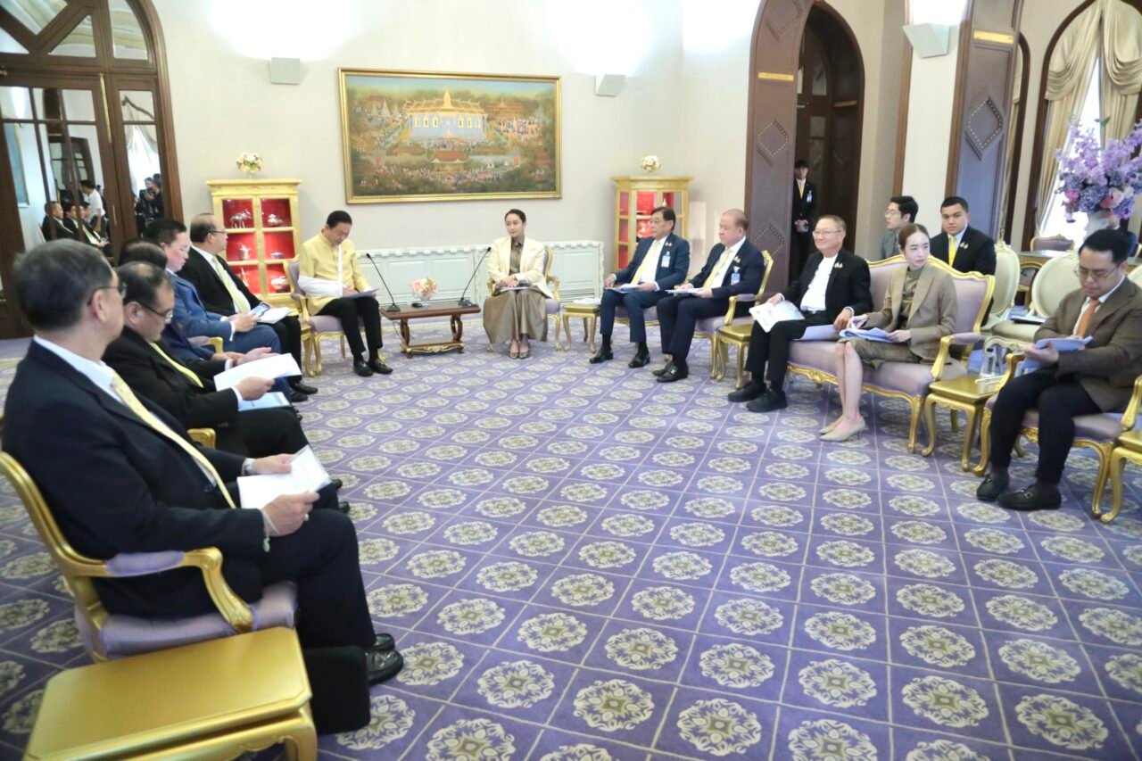 น.ส.แพทองธาร กล่าวว่า ดีใจที่ได้เจอที่ทำเนียบรัฐบาลอีกครั้งเพราะได้เจอครั้งแรกที่พรรคเพื่อไทยก่อนแถลงนโยบายรัฐบาล ก็อยากพูดคุยแลกเปลี่ยนกันซึ่งครั้งที่แล้วก็ถือว่าเป็นประโยชน์อย่างมาก อย่างที่ทราบกันอยู่แล้วว่าประเทศไทยประสบปัญหาเรื่องศักยภาพการเติบโตของเศรษฐกิจซึ่งต่อเนื่องเป็นระยะเวลานานกว่า 10 ปีและแน่นอนว่าผลกระทบนี้ส่งผลถึงประชาชนมีหนี้ครัวเรือนสูงขึ้นอยากให้ภาครัฐและภาคเอกชนได้พูดคุยร่วมมือกัน เราไม่สามารถจะพูดได้แค่เรื่องการปรับโครงสร้างหนี้อย่างเดียวที่เป็นปัญหา แต่ต้องมีการหารายได้ใหม่เข้าสู่ประเทศถือว่าเป็นสิ่งสำคัญที่จะทำให้เศรษฐกิจโตได้