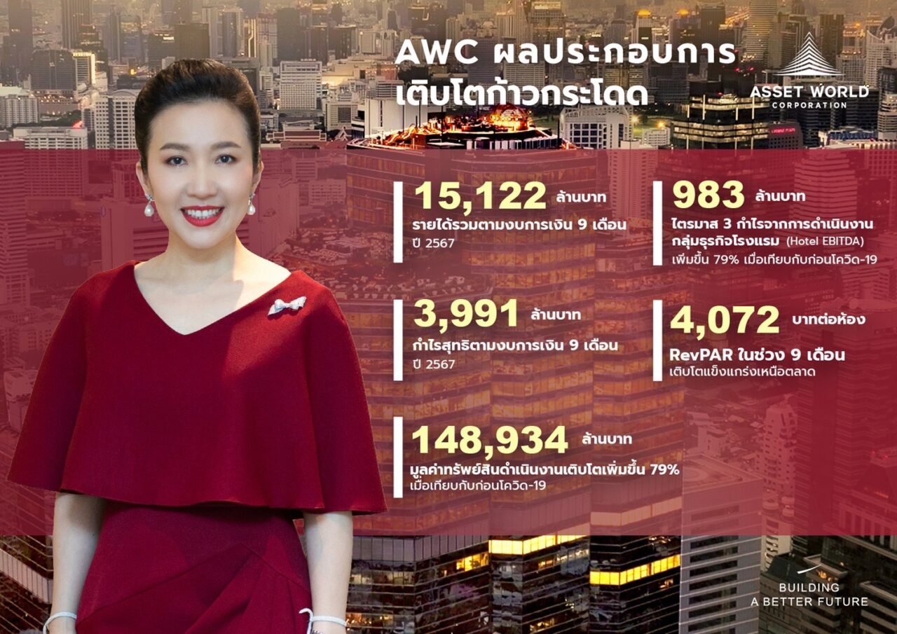 AWC เปิดผลประกอบการ 9 เดือน กำไร 3.9 พันล้านบาท กลุ่มโรงแรมเติบโตก้าวกระโดด 42%
