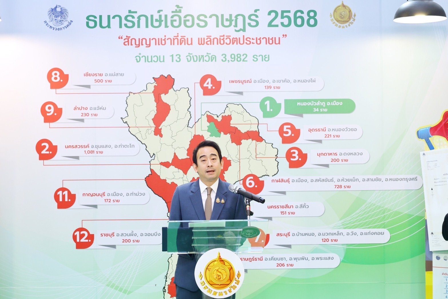 นายเผ่าภูมิ โรจนสกุล รมช.คลัง เปิดเผยว่า ในปีงบ 68 กรมธนารักษ์จะเดินหน้าจัดโครงการธนารักษ์เอื้อราษฎร์ โดยตั้งเป้าหมายแจกสัญญาเช่าที่ทำกินและที่อยู่อาศัยให้พี่น้องประชาชนรวม 3,982 ราย เพิ่มขึ้นจากปีก่อน 24% เนื้อที่กว่า 31,277 ไร่ เพิ่มขึ้นจากปีก่อนถึงเกือบ 3 เท่าตัว เพื่อช่วยให้ประชาชนจำนวนมากที่ไร้ที่ทำกินตามกฎหมาย ไร้ที่อยู่อาศัย ได้มีที่ทำมาหากินเป็นของตัวเอง โดยให้ทำสัญญาครั้งละ 3 ปี และสามารถนำสัญญาเช่าไปประกอบการยื่นกู้ได้