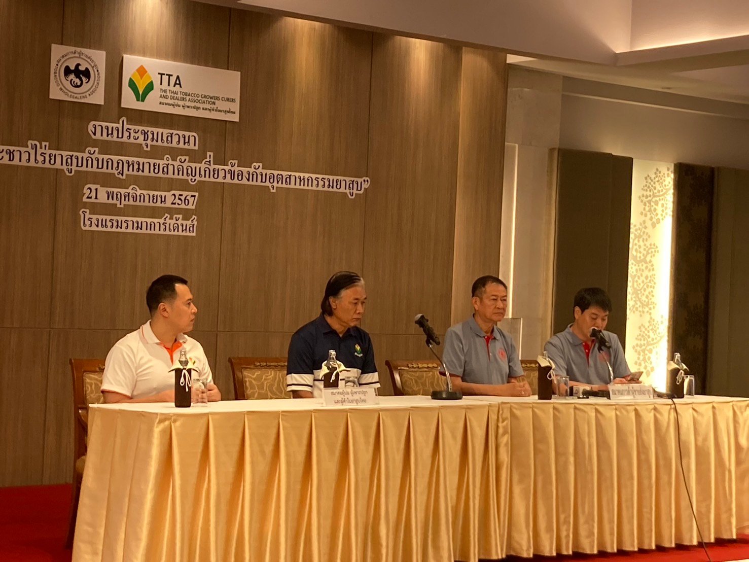 นายธานินทร์ หิรัญโชติ นายกสมาคมการค้าผู้ขายส่งยาสูบ เปิดเผยว่า สมาคมผู้บ่ม ผู้เพาะปลูก และผู้ค้าใบยาสูบไทยได้ออกแถลงการณ์ร่วมกันคัดค้านการปรับโครงสร้างภาษีสรรพสามิตยาสูบจาก 2 อัตรา เหลืออัตราเดียว และค้านร่างกฎกระทรวงส่วนประกอบผลิตภัณฑ์ยาสูบ และสารที่เกิดจากการเผาไหม้ของส่วนประกอบผลิตภัณฑ์ยาสูบ ซึ่งเป็น 2 กฎหมายใหม่ที่รัฐบาลเตรียมนำออกมาใช้ เพราะกังวลว่าจะเป็นการซ้ำเติมอุตสาหกรรมยาสูบให้ได้รับความเสียหาย และเป็นช่องโหว่ให้บุหรี่เถื่อนระบาดเพิ่มขึ้นอีก