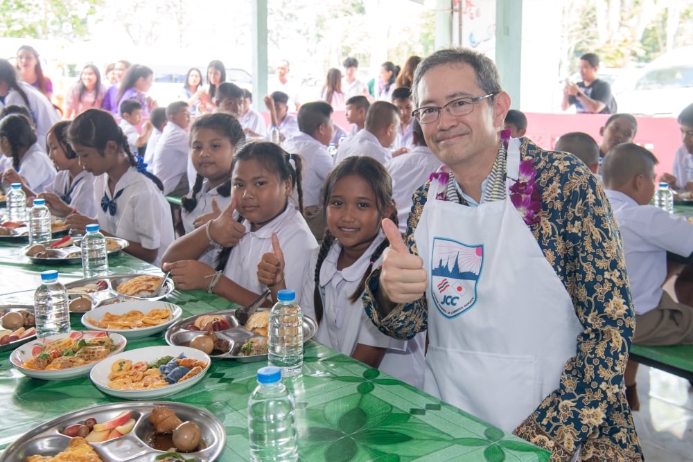 นายฮิโรยาสุ ซาโต้ รองประธานหอการค้าญี่ปุ่น-กรุงเทพฯ กล่าวเสริมว่า JCCB ร่วมมือกับ เครือซีพี ซีพีเอฟ และมูลนิธิเจริญโภคภัณฑ์พัฒนาชีวิตชนบท ก้าวเข้าสู่ปีที่ 25 ขยายโครงการฯ อย่างต่อเนื่อง รวม 150 โรงเรียนครอบคลุมทั่วประเทศ โดยในปีนี้ได้คัดเลือกโรงเรียนในพื้นที่ภาคใต้และภาคเหนือรวม 4 แห่งเข้าร่วมโครงการฯ ได้แก่ โรงเรียนบ้านคลองชะอุ่น จ.สุราษฎร์ธานี,โรงเรียนตำรวจตระเวนชายแดนเทคนิคดุสิต,โรงเรียนบ้านผาแดงหลวง และศูนย์การเรียนตำรวจตระเวนชายแดนบ้านห้วยกุ๊ก จ.เชียงราย ซึ่งไม่เพียงช่วยลดปัญหาทุพโภชนาการ ยังส่งเสริมความสามารถในการพึ่งพาตนเองของโรงเรียนและชุมชนอีกด้วย