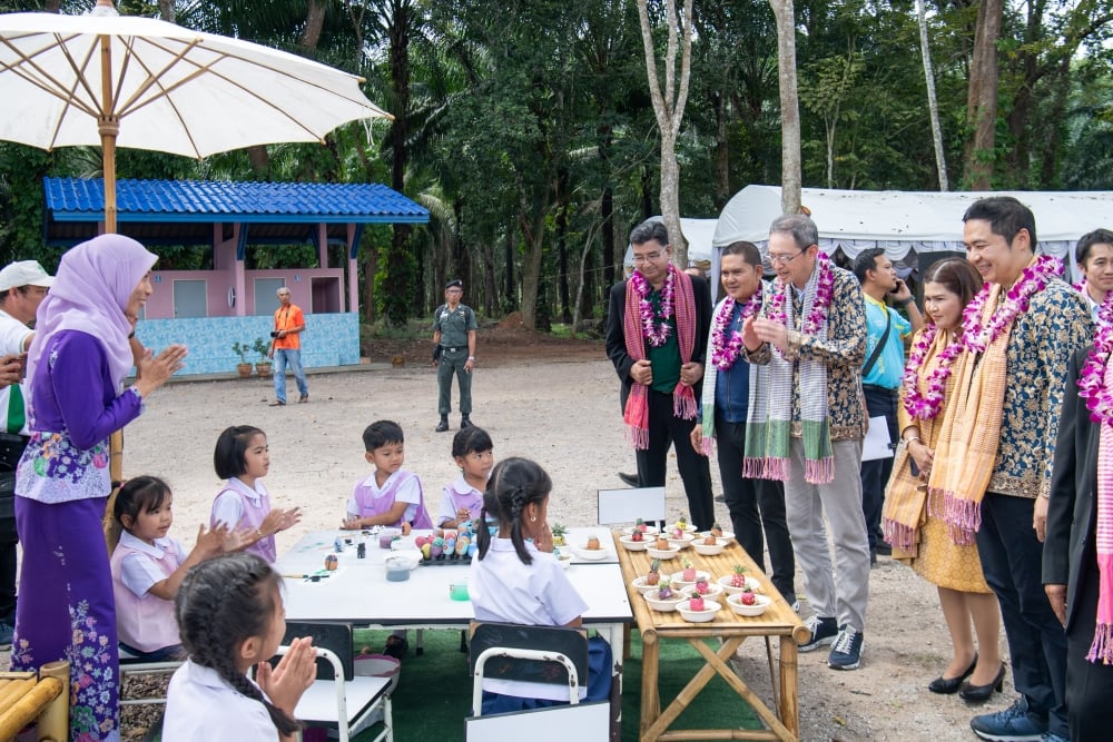 โดยมี นายสุคนธ์ หนูภักดี รองผู้ว่าราชการจังหวัดสุราษฎร์ธานี เป็นประธานในพิธี พร้อมด้วย นายฮิโรยาสุ ซาโต้ รองประธานหอการค้าญี่ปุ่น และประธานส่วนการศึกษา คณะกรรมการฝ่ายความช่วยเหลือสังคม นายจอมกิตติ ศิริกุล กรรมการและเลขาธิการ มูลนิธิเจริญโภคภัณฑ์พัฒนาชีวิตชนบท นายวราราชย์ เรืองศรี ผู้เชี่ยวชาญอาวุโส ผู้แทนรองกรรมการผู้จัดการอาวุโส ซีพีเอฟ เเละ ดร.สุชาดา ลิ่มสวัสดิ์ ผู้อำนวยการสำนักงานเขตพื้นที่การศึกษาประถมศึกษาสุราษฎร์ธานี เขต 2 พร้อมคณะครูและนักเรียน ณ โรงเรียนบ้านคลองชะอุ่น อ.พนม จ.สุราษฎร์ธานี
