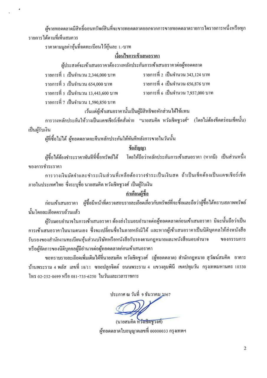 ประกาศเรื่อง ขายทอดตลาดหุ้น PRIME ในวันที่ 27 ธันวาคม 2567 ผู้ทอดตลาดใบอนุญาตเลขที่ 00000033 กรุงเทพมหานคร