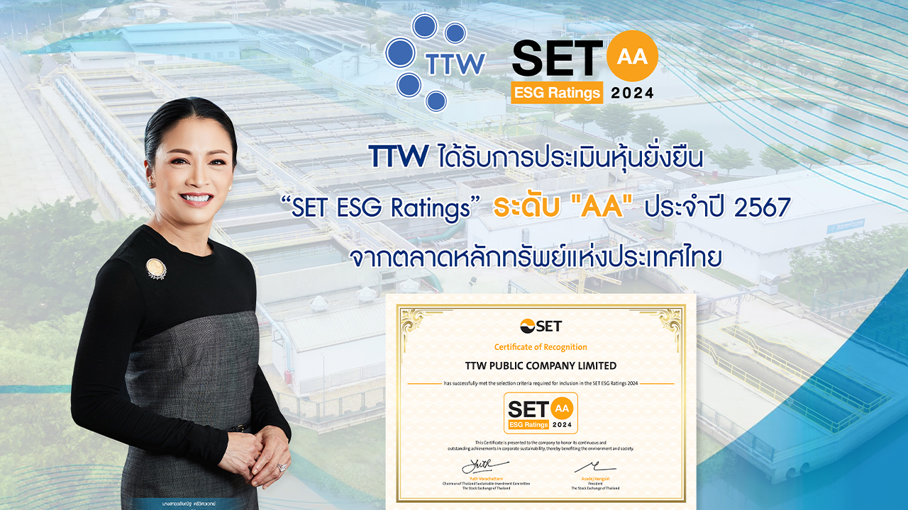 TTW ได้รับการประเมิน หุ้นยั่งยืน “SET ESG Ratings” ในระดับ “AA” ประจำปี 2567 จากตลาดหลักทรัพย์แห่งประเทศไทย