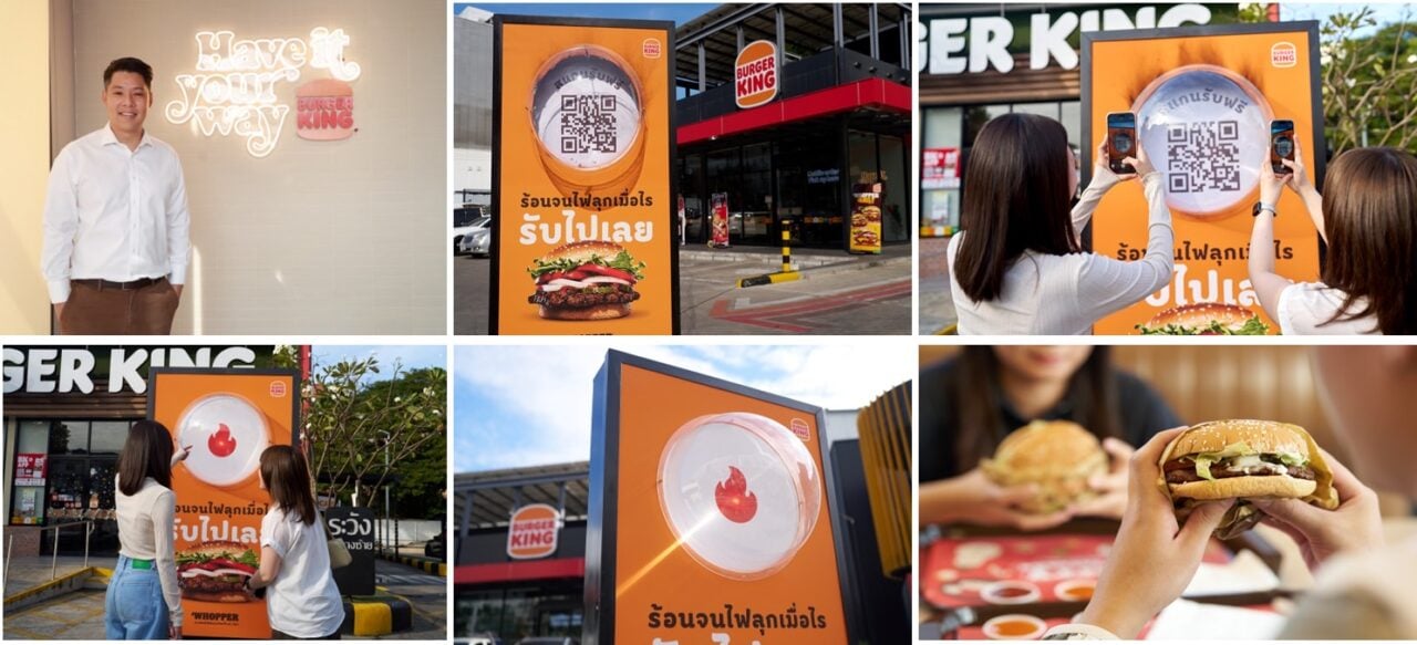 เบอร์เกอร์คิง แบรนด์เบอร์เกอร์สัญชาติอเมริกัน เดินหน้าตอกย้ำความเป็นผู้นำด้านการตลาดสุดสร้างสรรค์ เปิดตัวแคมเปญ “The Sunburn Billboard” ชวนลูกค้าสัมผัสไอเดียใหม่ที่เปลี่ยนความร้อนแรงของแสงแดดฤดูหนาวในกรุงเทพฯ ให้กลายเป็นเบอร์เกอร์ฟรี ผ่านลูกเล่นป้ายโฆษณาสุดล้ำ โดยใช้กระจกทรงโค้งเหมือนแว่นขยายรวบรวมแสงแดด จนเกิดความร้อนในจุดเดียวเผากระดาษบนป้ายโฆษณา จนปรากฏ QR Code ที่ซ่อนอยู่ และให้ลูกค้าสมาชิกแอปพลิเคชัน Burger King สแกนรับ Whopper ฟรี 1 ชิ้น (มูลค่า 179 บาท) โดยสามารถสแกนรับสิทธิ์ได้ที่สาขารัชดาภิเษก ระหว่างวันที่ 19 – 31 ธันวาคม 2567 จำนวนจำกัดเพียง 999 สิทธิ์เท่านั้น