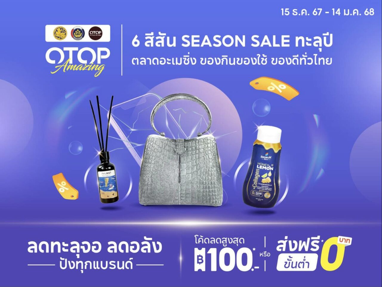 ทั้งนี้ แคมเปญที่ 3 ของโครงการฯ “โปรใหญ่ส่งท้ายปี OTOP ลดทะลุจอ” จัดขึ้น ระหว่างวันที่ 15 ธันวาคม 2567–14 มกราคม 2568 จะเป็นสีสันของชุดเซตผลิตภัณฑ์โอทอปที่เหมาะกับการเป็นของขวัญของฝากในเทศกาลปีใหม่ และผลิตภัณฑ์หลากหลายประเภททั้งอาหารและเครื่องดื่ม,ผ้า เครื่องแต่งกาย,ของใช้/ของตกแต่ง/ของที่ระลึก และสมุนไพรที่ไม่ใช่อาหาร ที่คัดสรรและรวบรวมไว้ในแคมเปญกว่า 750 ผู้ประกอบการ มากกว่า 5,000 ผลิตภัณฑ์ มาขายบนแพลตฟอร์มช้อปปี้ พร้อมรับส่วนลดสูงสุด 100 บาท และคูปองส่งฟรี ได้ทั้งแคมเปญ ตลอดทุกวัน 24 ชั่วโมง ที่ช้อปปี้ หรือ พิมพ์คำว่า OTOP หรือ โอทอป หรือ โอทอปอะเมซิ่ง