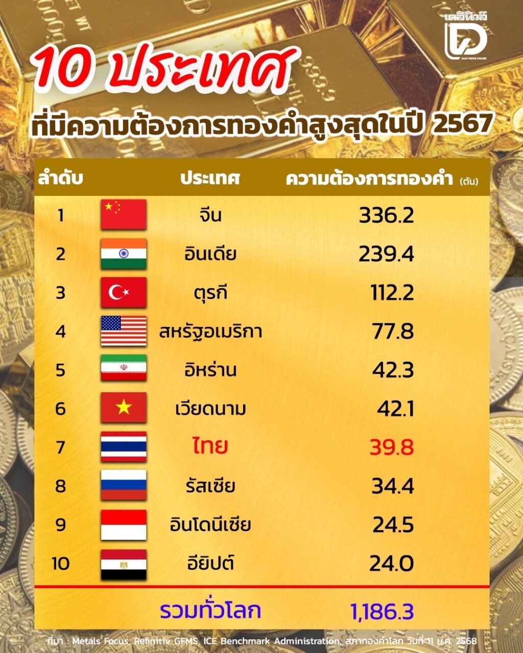 7.ไทย ต้องการทองคำ 39.8 ตัน