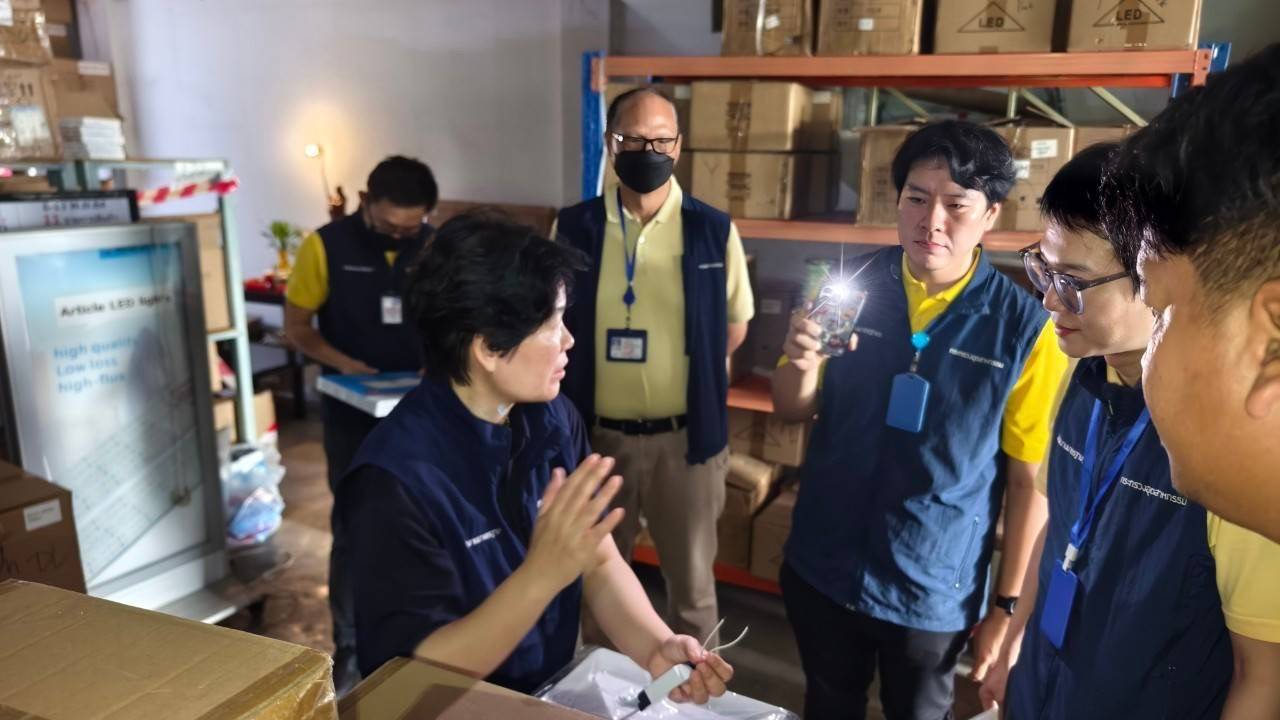 น.ส.ฐิติภัสร์ กล่าวว่า ทีมชุดตรวจการสุดซอยได้เข้าตรวจร้านขายเครื่องใช้ไฟฟ้าของบริษัท นิว สตาร์ไลท์ เทค (ไทยแลนด์) จำกัด แขวงสวนหลวง เขตสวนหลวง กรุงเทพฯ โดยระบุชื่อนายต้า ชิ่ง วู๋ เป็นกรรมการ ซึ่งบริษัทฯ เคยถูกดำเนินคดีและจับกุมเมื่อปี 2564 ได้ถูกยึดอายัดของกลางกว่า 11 ล้านบาท และทางคณะกรรมการมาตรฐานผลิตภัณฑ์อุตสาหกรรม (กมอ.) ได้มีคำสั่งให้ทำลายของกลาง และเมื่อวันที่ 23 มกราคม 2568 ที่ผ่านมา สมอ. ได้เข้าดำเนินการตามคำสั่ง กมอ. ปรากฏว่าของกลางทั้งหมดหายไป เจ้าหน้าที่จึงได้ลงบันทึกประจำวันและดำเนินคดี พร้อมขยายผลต่อ โดยตรวจพบสินค้าไม่มี มอก. ลอตใหม่มูลค่ากว่า 26.3 ล้านบาท เช่น หลอดไฟแอลอีดี โคมไฟ หลอดไฟขั้วเกลียว แหล่งจ่ายไฟสำหรับคอมพิวเตอร์ อะแดปเตอร์ สายไฟ และป้ายไฟ เป็นต้น จึงได้ยึดอายัดและดำเนินคดีข้อหาจำหน่ายสินค้าไม่ได้มาตรฐานและนำของกลางมาเก็บรักษาไว้เพื่อไม่ให้มีการกระทำที่ฝ่าฝืนกฎหมายอีก