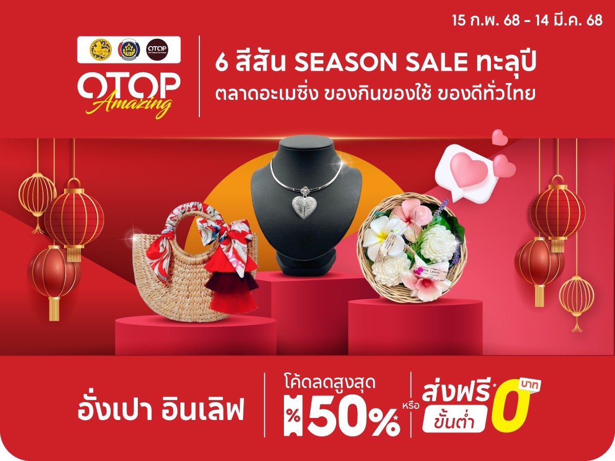 ขณะที่ในเดือนกุมภาพันธ์นี้ เป็นแคมเปญที่ 5 ซึ่งใกล้สู่โค้งสุดท้ายของโครงการแล้ว ทางกรมการพัฒนาชุมชนยังคงจัดเตรียมโปรโมชั่นให้กับนักช้อปออนไลน์อย่างต่อเนื่อง มอบส่วนลดสูงสุด ถึง 50 เปอร์เซ็นต์ และคูปองส่วนลดค่าขนส่งฟรีทั่วไทย โดยผลิตภัณฑ์ไฮไลต์ในแคมเปญนี้จะเป็นผลิตภัณฑ์โอทอปแทนใจ ไม่ว่าจะเป็นเครื่องประดับ,Gift Set คู่รักโอทอปต่างๆ เพื่อให้เข้ากับเดือนกุมภาพันธ์เดือนแห่งความรัก ระหว่างวันที่ 15 กุมภาพันธ์–14 มีนาคม 2568 ใน “OTOP Amazing : อั่งเปา อินเลิฟ”