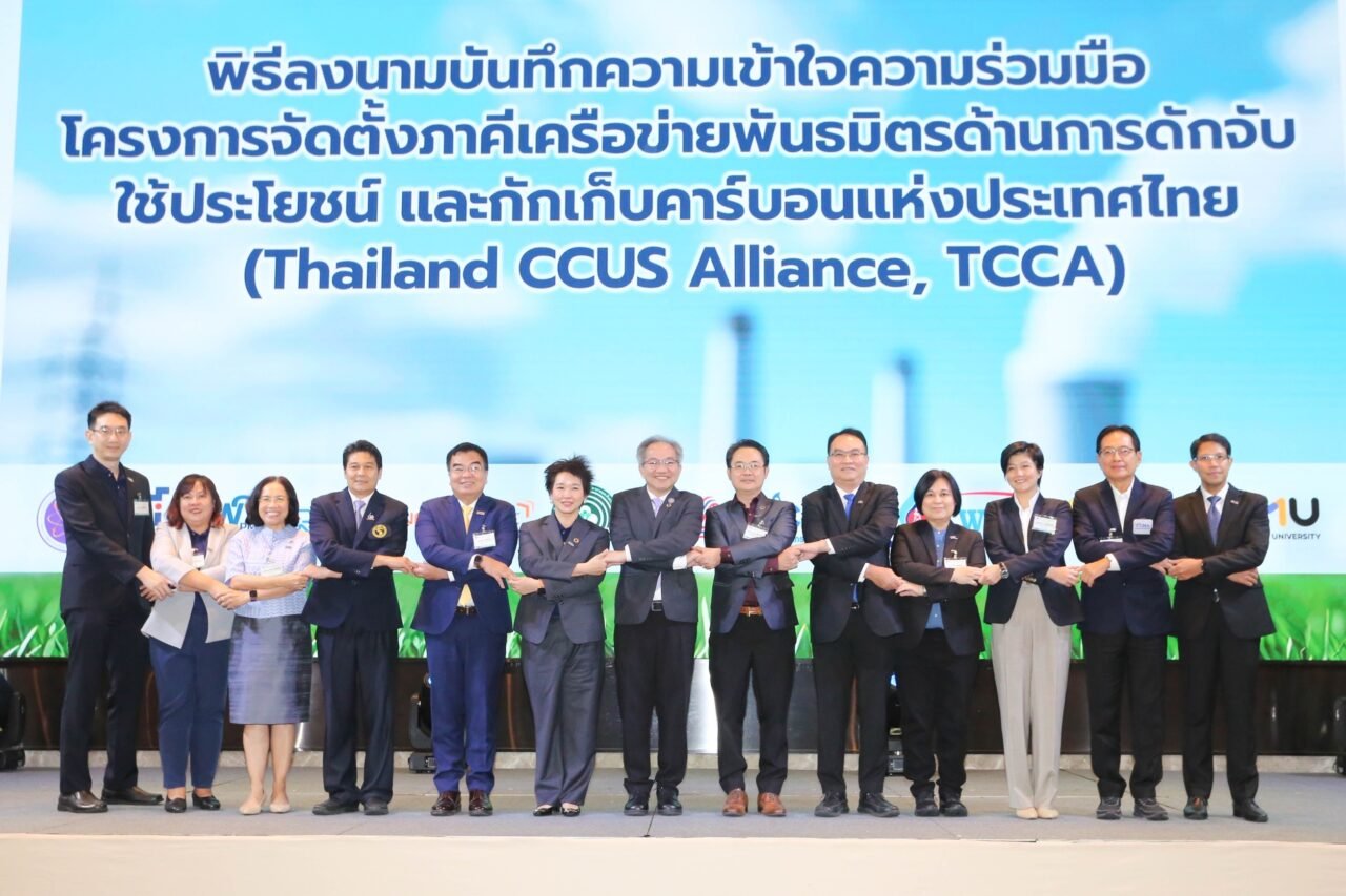 นายชูกิจ ลิมปิจำนงค์ ผู้อำนวยการสำนักงานพัฒนาวิทยาศาสตร์และเทคโนโลยีแห่งชาติ (สวทช.) เปิดเผยว่า ได้ร่วมลงนามบันทึกความเข้าใจความร่วมมือกับพันธมิตร จัดตั้งภาคีเครือข่ายพันธมิตรด้านการดักจับ ใช้ประโยชน์ และกักเก็บคาร์บอนแห่งประเทศไทย (Thailand CCUS Alliance,TCCA) เพื่อขับเคลื่อนเทคโนโลยีและอุตสาหกรรมการดักจับ ใช้ประโยชน์ และกักเก็บคาร์บอน (CCUS) ในประเทศ เพิ่มความสามารถในการแข่งขันด้านเทคโนโลยี CCUS ของไทยในเวทีโลก สู่เป้าหมายความเป็นกลางทางคาร์บอนอย่างยั่งยืน