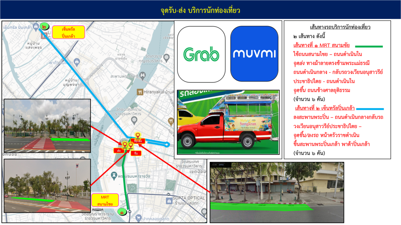 สำหรับการเดินทางร่วมงานสามารถใช้บริการรถรับส่งผู้รถสองแถวตามจุดจอดรถรับส่ง 2 จุด ได้แก่ MRT สนามไชย และ เซ็นทรัลปิ่นเกล้า ระหว่างวันที่ 11 – 15 เมษายน 2568 ตั้งแต่เวลา 15.00 น. – 23.00 น. ผู้ที่เดินทางมาด้วยรถยนส่วนตัวสามารถจอดได้ที่ เซ็นทรัลปิ่นเกล้า (จอดฟรีตลอด 24 ชั่วโมง) ราชนาวี (จอดได้ตั้งแต่เวลา 06.00 – 01.00 น. ค่าบริการชั่วโมงแรก 30 บาท ชั่วโมงถัดไป 20 บาท) ท่ามหาราช (06.00 น. – 00.00 น. ชั่วโมงละ 40 บาท จอดเกินเที่ยงคืน 100 บาท) ผู้ที่สนใจสามารถติดตามรายละเอียดเพิ่มเติมได้ที่ www.thailandfestival.org และ Facebook : Thailand Festival หรือ โทร. 1672 Travel Buddy