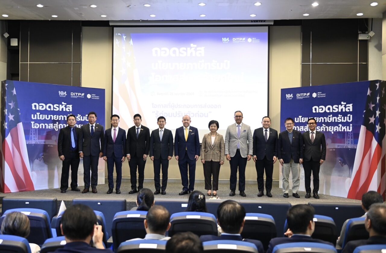 เมื่อวันที่ 25 เม.ย.68 นายพิชัย นริพทะพันธุ์ รมว.พาณิชย์ เปิดเวทีสัมมนา “ถอดรหัสนโยบายภาษีทรัมป์: โอกาสของการค้ายุคใหม่” ร่วมกับผู้แทนจากภาครัฐและเอกชน อาทิ หอการค้าไทย สภาหอการค้าแห่งประเทศไทย สภาอุตสาหกรรมแห่งประเทศไทย และทูตพาณิชย์ในสหรัฐอเมริกา ภายใต้นโยบายภาษีสหรัฐฯและสถานการณ์ความขัดแย้งทางการค้าระหว่างสหรัฐฯ และจีน อาจกลายเป็นโอกาสสำคัญของไทยในการขยายตลาดส่งออก โดยเฉพาะสินค้าเป้าหมายที่ไทยสามารถเข้าไปทดแทน พร้อมเร่งเดินหน้าเจรจา FTA กับหลายประเทศ ควบคู่มาตรการเข้มสกัดสินค้าด้อยคุณภาพและการสวมสิทธิ์นำเข้าสินค้าจากต่างประเทศ