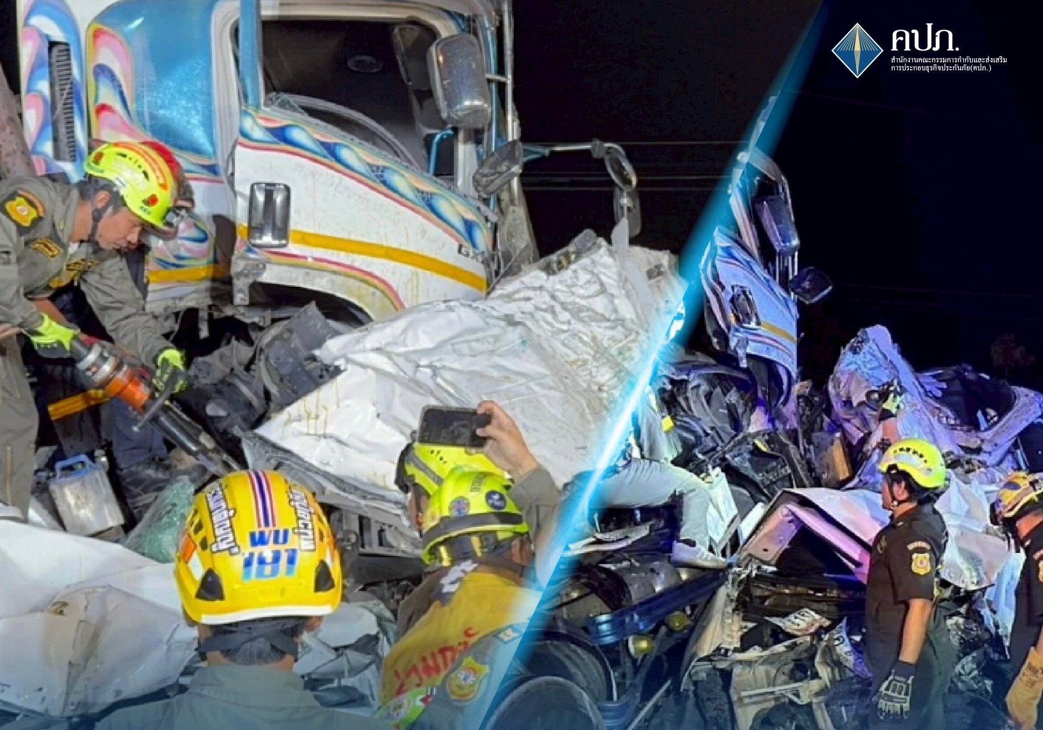 คปภ. ลงพื้นที่ตรวจสอบและให้ความช่วยเหลือด้านประกันภัย กรณีอุบัติเหตุรถบรรทุกพ่วง 18 ล้อ ชนท้ายรถยนต์และรถบรรทุกสิบล้อ จังหวัดสมุทรปราการ มีผู้เสียชีวิตและบาดเจ็บจำนวนมาก