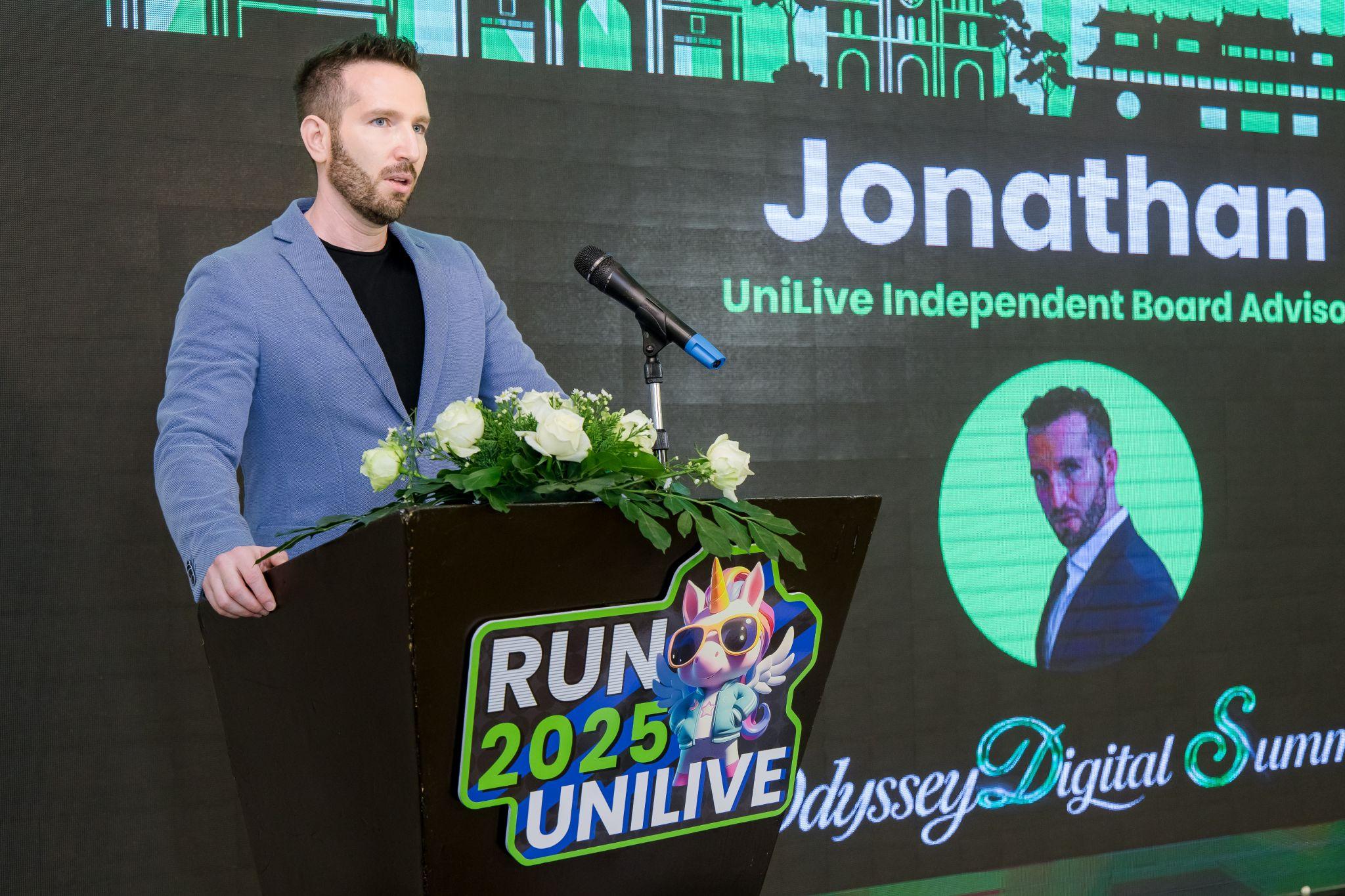 Jonathan กรรมการอิสระและที่ปรึกษาของ UniLive ขึ้นเวทีและกล่าวสุนทรพจน์เปิดงานที่สร้างแรงบันดาลใจ โดยเน้นที่ค่านิยมหลักของ Web3 ซึ่งได้แก่ "อำนาจอธิปไตยของผู้ใช้และผลตอบแทนจากมูลค่า" เขาได้แบ่งปันมุมมองเชิงลึกและชื่นชมความคิดริเริ่มเชิงกลยุทธ์และความสำเร็จของ UniLive ในการสร้างระบบนิเวศแบบเปิดและการปรับเปลี่ยนมูลค่าของเนื้อหา