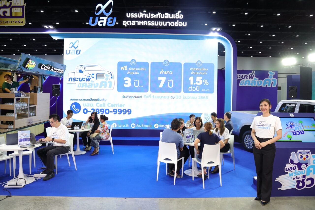 ในบรรดาบูธต่างๆ “บสย.” หรือ บรรษัทประกันสินเชื่ออุตสาหกรรมขนาดย่อม สะดุดตาเป็นพิเศษ ด้วยการนำ “รถกระบะ” ทั้งรูปแบบ “ฟู้ดทรัค” และกระบะขนสินค้า ที่สื่อถึงมาตรการ “กระบะพี่ มีคลังค้ำ” ภายใต้โครงการค้ำประกันสินเชื่อเช่าซื้อ “บสย. SMEs PICK-UP” ที่เพิ่งเปิดตัวเมื่อช่วงปลายเดือนมีนาคม และได้รับการตอบรับอย่างมากในช่วงงานมอเตอร์โชว์ 2025 ที่ผ่านมา