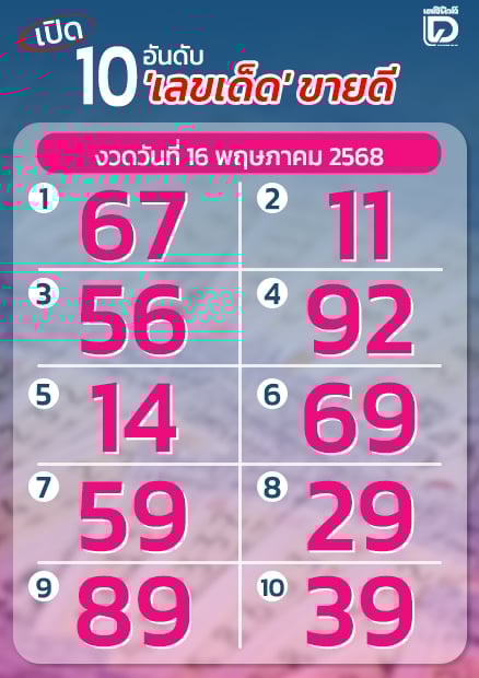 ส่องด่วน! เปิด 10 เลขเด็ดขายดี เกลี้ยงแผงงวด 16พ.ค.68 คอหวยกว้านซื้อลุ้นเป็นเศรษฐีใหม่