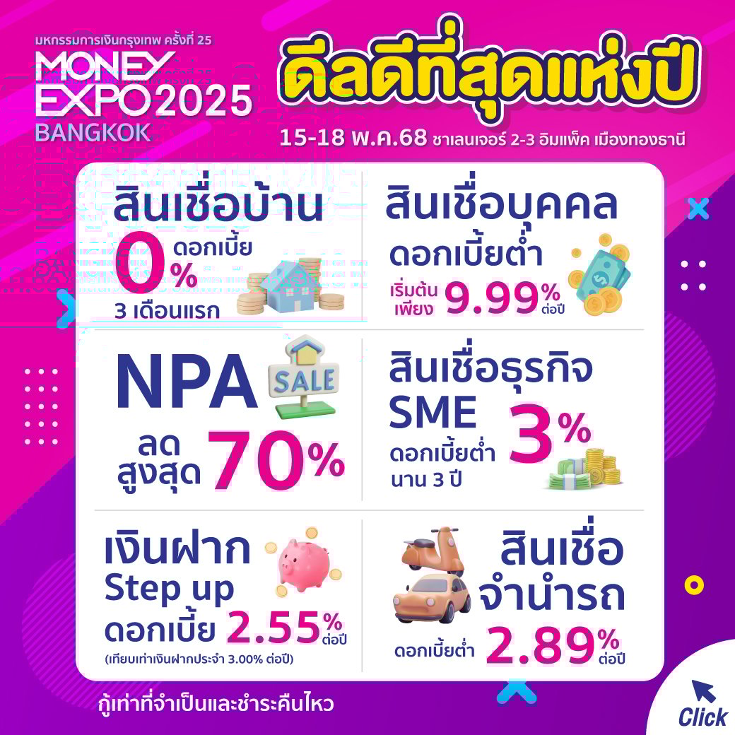 ส่องโปรโมชั่น MONEY EXPO 2025 สินเชื่อบ้าน-รถ-เงินฝาก 15-18 พ.ค.68