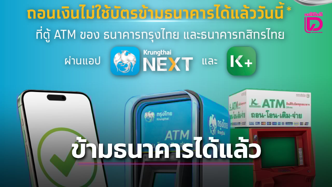 “กรุงไทย-กสิกรไทย” เพิ่มช่องทางให้ลูกค้า ถอนเงินไม่ใช้บัตรข้ามธนาคารที่ตู้ ATM ของทั้งสองธนาคารทั่วประเทศได้แล้ววันนี้