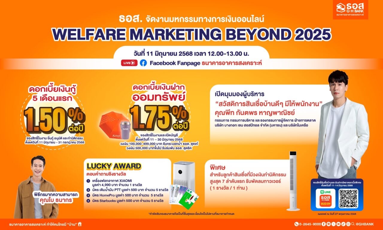 ธอส. หนุนคนไทยมีบ้าน จัดมหกรรมทางการเงินออนไลน์ : Welfare Marketing Beyond 2025