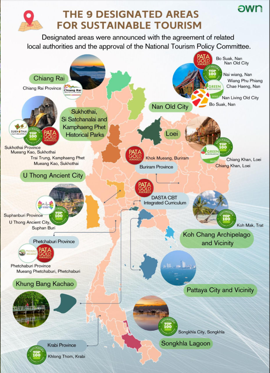 นอกจากนี้ อพท. เตรียมเปิดจักรวาลยั่งยืนเพื่อทำลายแทงท่องเที่ยวในพื้นที่พิเศษเพื่อการท่องเที่ยวอย่างยั่งยืนที่9พื้นที่ได้แก่ พื้นที่พิเศษเพื่อการท่องเที่ยวอย่างยั่งยืนหมู่เกาะช้างและพื้นที่เชื่อมโยง พื้นที่พิเศษเพื่อการท่องเที่ยวอย่างยั่งยืนเมืองพัทยาและพื้นที่เชื่อมโยง พื้นที่พิเศษเพื่อการท่องเที่ยวอย่างยั่งยืนมรดกโลกสุโขทัย-ศรีสัชนาลัย-กำแพงเพชรพื้นที่พิเศษเพื่อการท่องเที่ยวอย่างยั่งยืนเลย พื้นที่พิเศษเพื่อการท่องเที่ยวอย่างยั่งยืนเมืองเก่าน่าน พื้นที่พิเศษเพื่อการท่องเที่ยวอย่างยั่งยืนเมืองโบราณอู่ทองและพื้นที่เชื่อมโยง พื้นที่พิเศษเพื่อการท่องเที่ยวอย่างยั่งยืนลุ่มน้ำทะเลสาบสงขลา พื้นที่พิเศษเพื่อการท่องเที่ยวอย่างยั่งยืนเชียงราย พื้นที่พิเศษเพื่อการท่องเที่ยวอย่างยั่งยืนคุ้งบางกะเจ้า