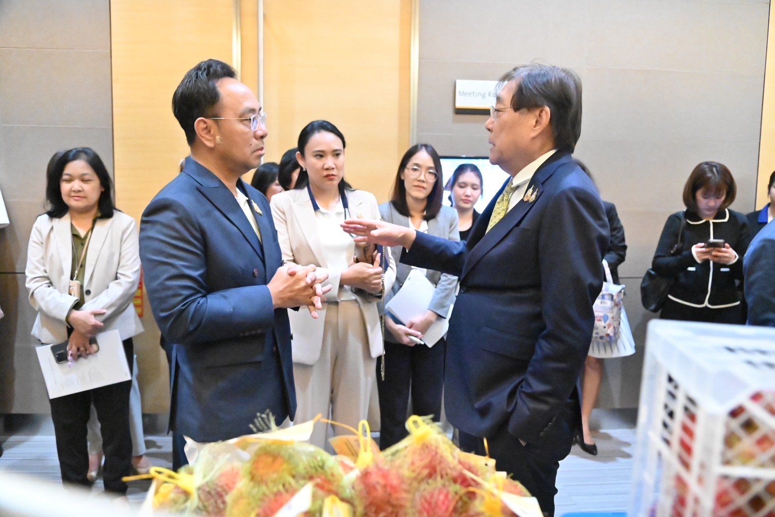 วันที่ 20 มิถุนายน 2568 ณ อาคารตลาดหลักทรัพย์แห่งประเทศไทย นายวิทยากร มณีเนตร อธิบดีกรมการค้าภายใน เปิดเผยว่า “กรมการค้าภายใน เดินหน้าร่วมกับพันธมิตรทั้งภาครัฐและเอกชน ในการช่วยรับซื้อผลไม้ภาคตะวันออก โดยวันนี้ท่านพิชัย ชุณหวชิร รองนายกรัฐมนตรีและรัฐมนตรีว่าการกระทรวงการคลัง ได้เชิญผู้บริหารระดับสูงของในกลุ่ม SET 50 จำนวน 40 บริษัท เข้าพบหารือ ด้วยเล็งเห็นถึงความสำคัญในการร่วมมือกันช่วยเหลือพี่น้องเกษตรกร และการสนับสนุนเชื่อมโยงผลไม้และสินค้าเกษตรเป็นการช่วยขับเคลื่อนเศรษฐกิจและสังคมไทย สร้างรายได้ พัฒนาคุณภาพชีวิตเกษตรกรที่เป็นภาคส่วนสำคัญของประเทศ ซึ่งเป็นส่วนหนึ่งในภารกิจของตลาดหลักทรัพย์ฯ และบริษัทจดทะเบียน ที่จะมีส่วนร่วมในการพัฒนาเศรษฐกิจและสังคมอย่างยั่งยืน จึงขอให้บริษัทจดทะเบียนฯ สนับสนุนผลไม้และสินค้าเกษตรอื่นๆ ตลอดปี”