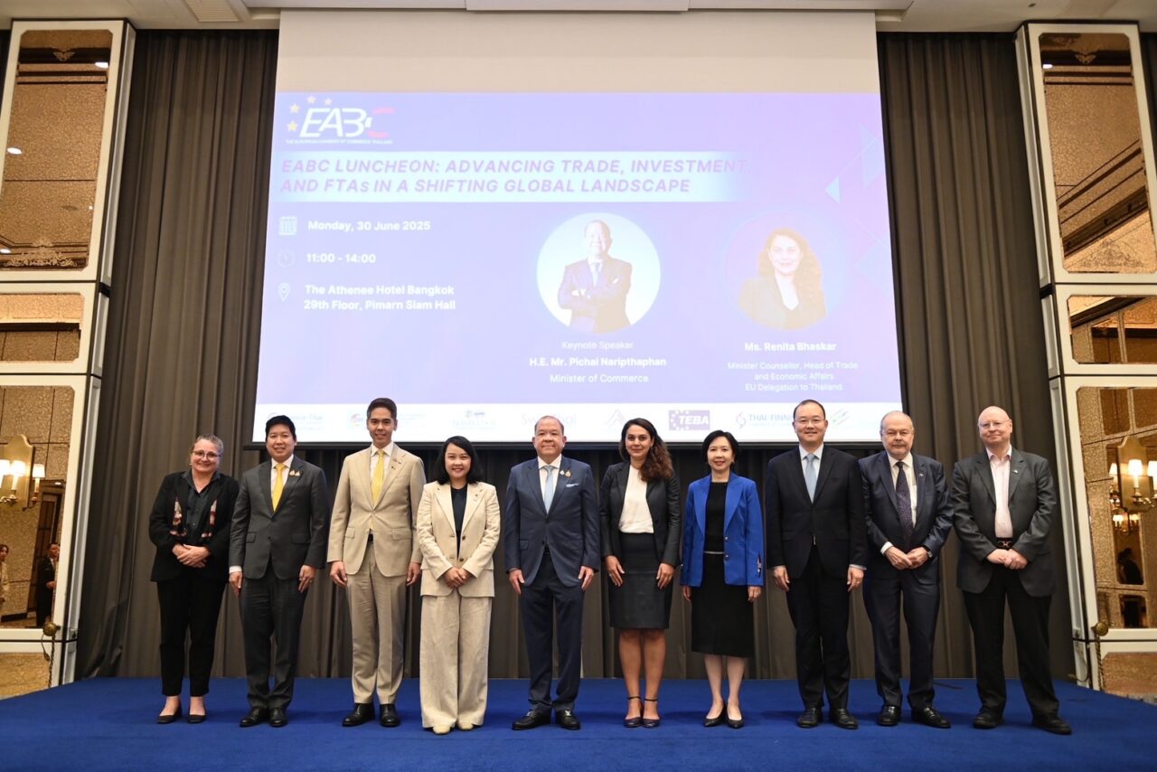 เมื่อวันที่ 30 มิ.ย.68 นายพิชัย นริพทะพันธุ์ รมว.พาณิชย์ เข้าร่วมกล่าวปาฐกถาในงาน EABC Luncheon: Advancing Trade,Investment,and FTAs in a Shifting Global Landscape จัดโดย สมาคมการค้ายูโรเปียนเพื่อธุรกิจและการพาณิชย์(European Association for Business and Commerce: EABC) ณ โรงแรมดิ แอทธินี กรุงเทพฯ โดยมีผู้แทนภาคธุรกิจยุโรป สมาชิก EABC และผู้แทนทางการทูต เข้าร่วมงานอย่างคับคั่ง
