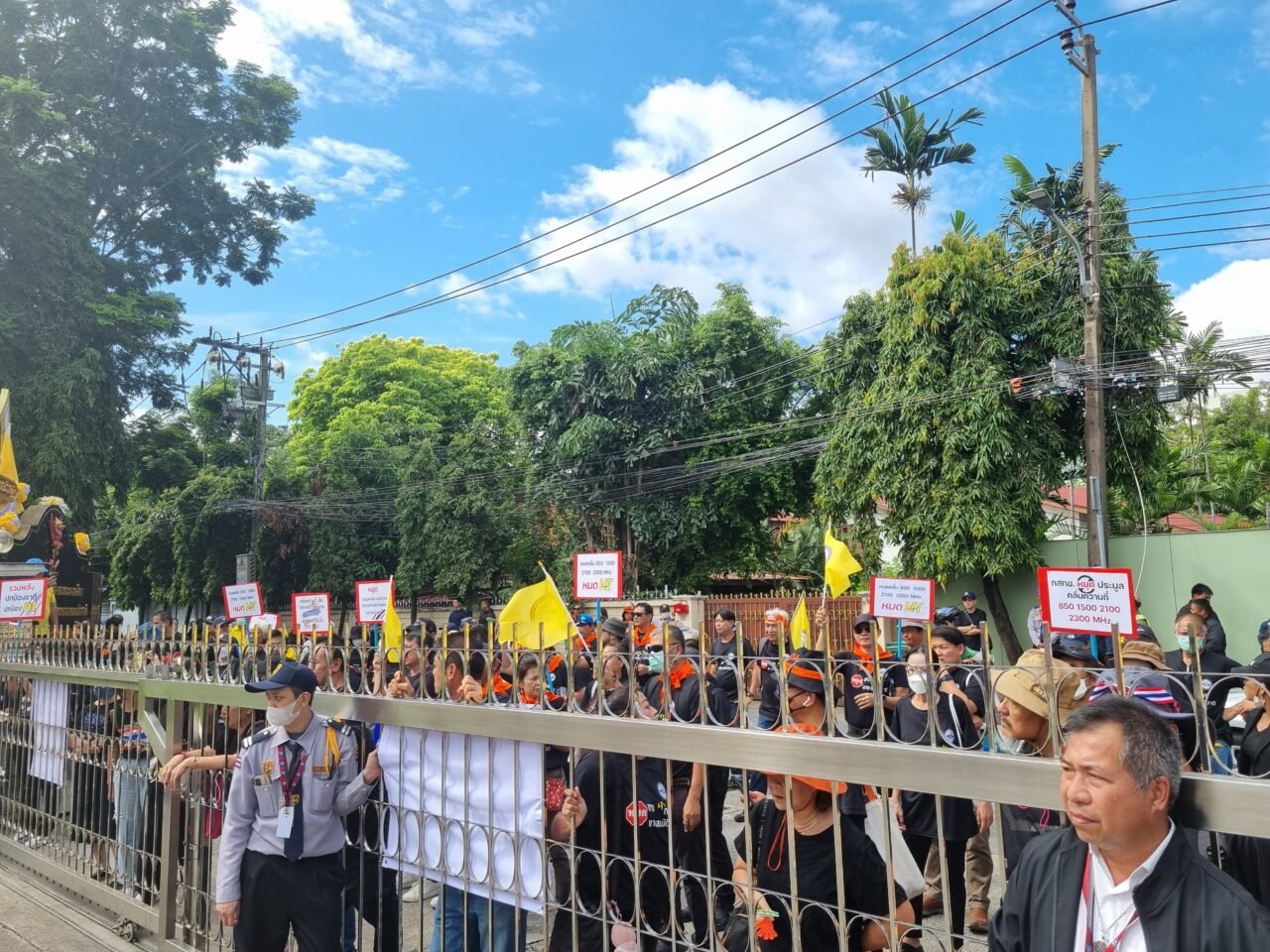 ม็อบสหภาพฯ NT บุก กสทช. ค้านการประมูล เจ้าหน้าที่ปิดประตูเข้าออก ไม่ให้ม็อบเข้ามาเพื่อให้การประมูลเดินหน้าได้อย่างต่อเนื่อง