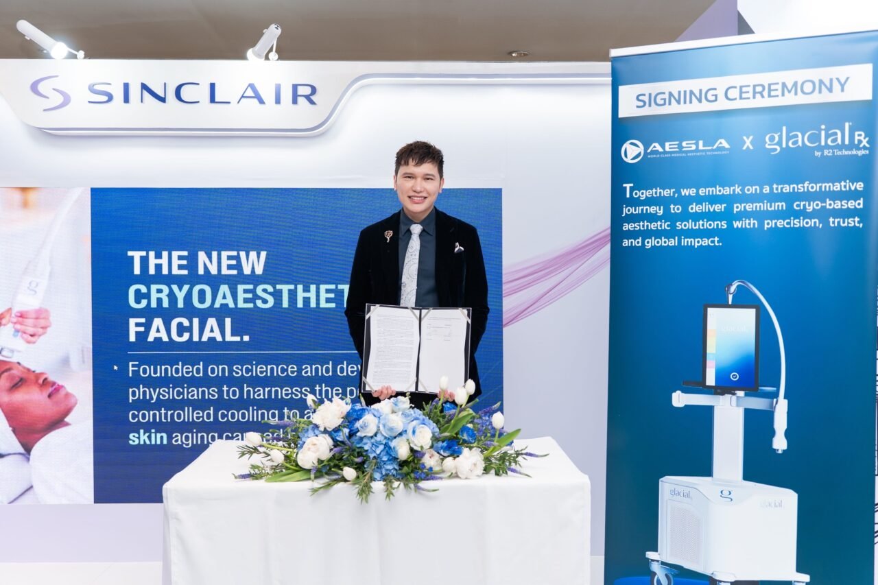 นายวรุตม์ สุทธินันท์ ผู้บริหาร บริษัท เอสล่า จำกัด (AESLA) ผู้นำเข้าและจัดจำหน่ายเครื่องมือแพทย์ด้านความงามและเวชสำอางชั้นนำ เปิดเผยว่า บริษัทได้จับมือกับ R2 Technologies ในการเป็นตัวแทนจำหน่ายเครื่อง Glacial® Rx อย่างเป็นทางการในประเทศไทย โดยมีจุดมุ่งหมายเพื่อนำนวัตกรรมความเย็นระดับโลก Cryomodulation™ เข้าสู่ตลาดความงามไทย ยกระดับการรักษาปัญหาผิวอย่างมีประสิทธิภาพ ปลอดภัย และไม่ต้องพักฟื้น