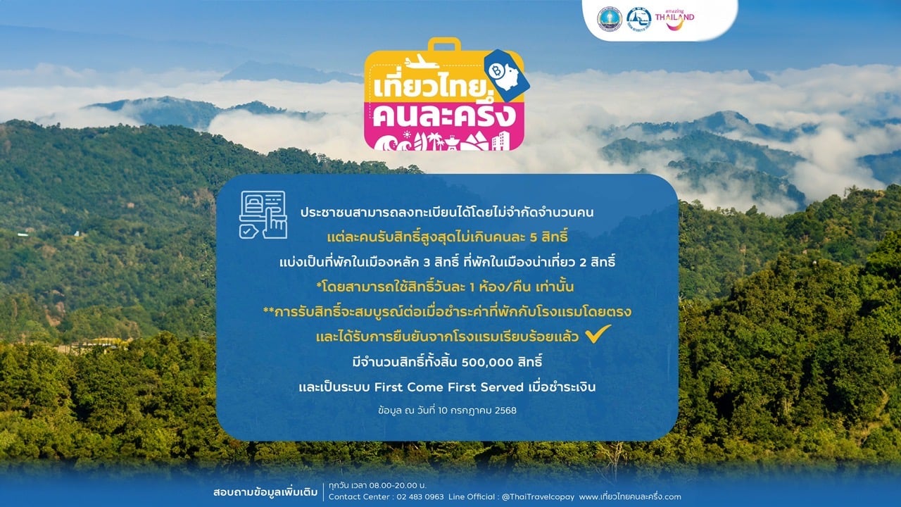 ททท. เปิดลงทะเบียน “เที่ยวไทยคนละครึ่ง” สำหรับประชาชน ตั้งแต่วันที่ 10 กรกฎาคม 2568