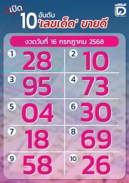 มาแล้ว 10 เลขเด็ดมาแรง งวดวันที่ 16 ก.ค.68 ลุ้นรับทรัพย์ก้อนโต รวยไม่ทันตั้งตัว