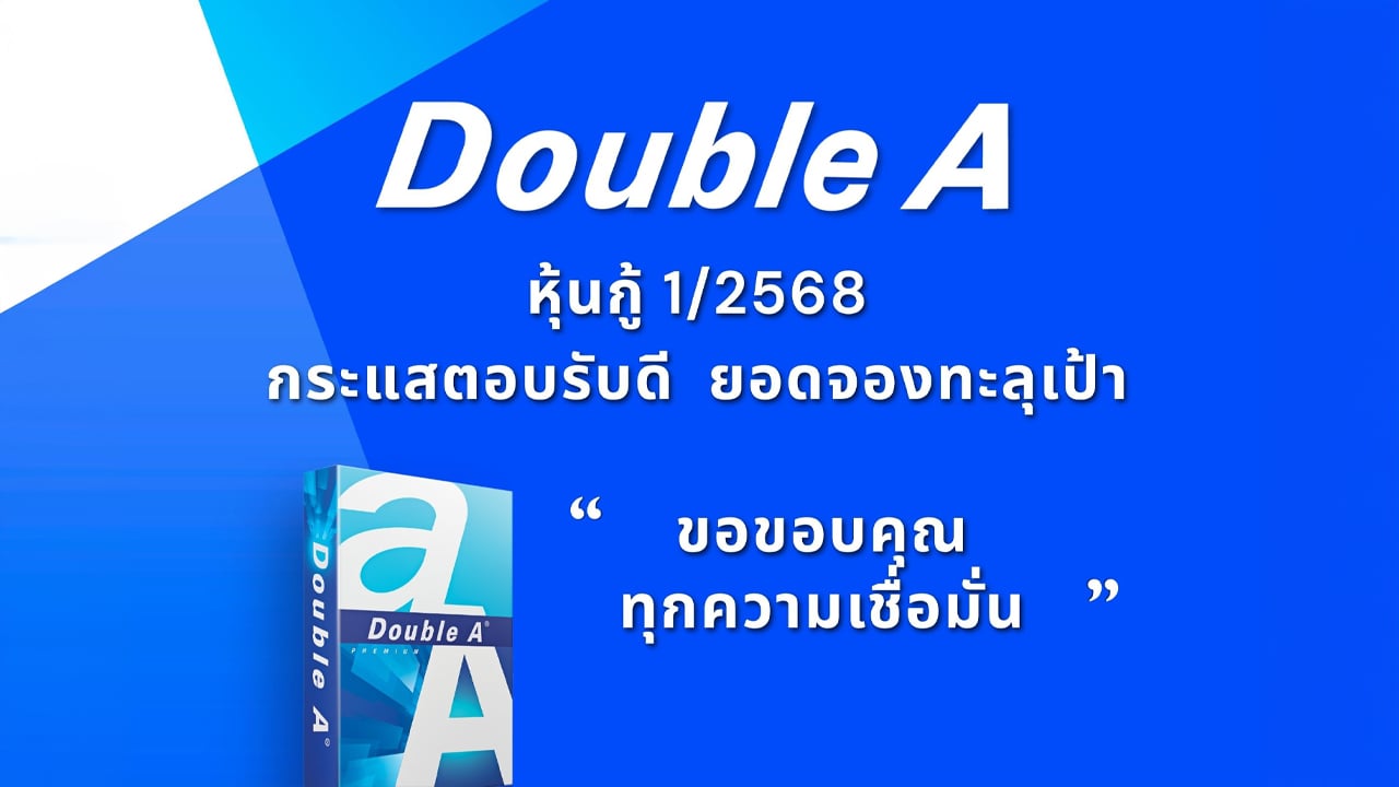 ดั๊บเบิ้ล เอ ขอขอบคุณทุกความเชื่อมั่น กับกระแสการตอบรับที่ดี หุ้นกู้ล่าสุด ยอดลงทุนทะลุเป้า 3 พันล้านบาท