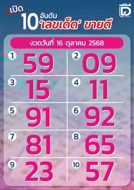 เปิด 10 เลขเด็ด งวดวันที่ 16 ต.ค.68 จับตาลุ้น ‘เลขมงคล’ ให้โชครับทรัพย์ก้อนโต